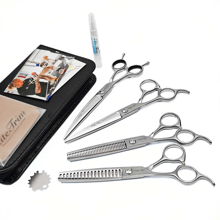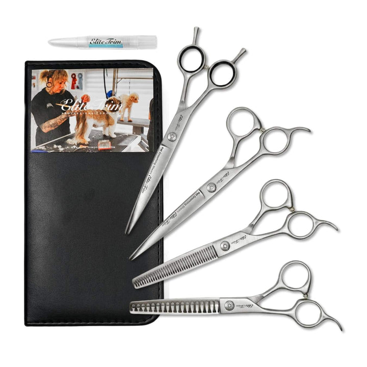 Sada Pretty Good™ pro leváky vám přináší „Velkou čtyřku“ základních nástrojů v jednom dokonale sladěném setu. Vyrobeno z prémiové japonské oceli, tyto nůžky jsou navrženy tak, aby spolu bezchybně fungovaly. Od odstranění objemu až po finální sametový vzhled máte nyní správný nástroj pro každý okamžik úpravy.