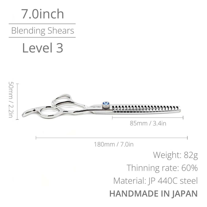 Eleve su rendimiento de aseo con la tijera Chunker Gemstone Pro™, fabricada en Japón con acero inoxidable japonés 440C premium para la experiencia de corte más suave y controlada. Diseñada para peluqueros profesionales que necesitan precisión, control de volumen y creación de texturas, esta herramienta ofrece cortes sedosos y sin tirones cada vez.