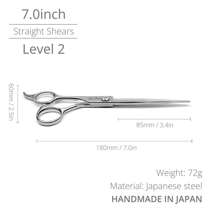 7.0インチ 左利き用ストレートシザー:パターン設定、大量カット、脚やアンダーラインのシャープでまっすぐなライン作りに日常的に使う頼れる相棒です。