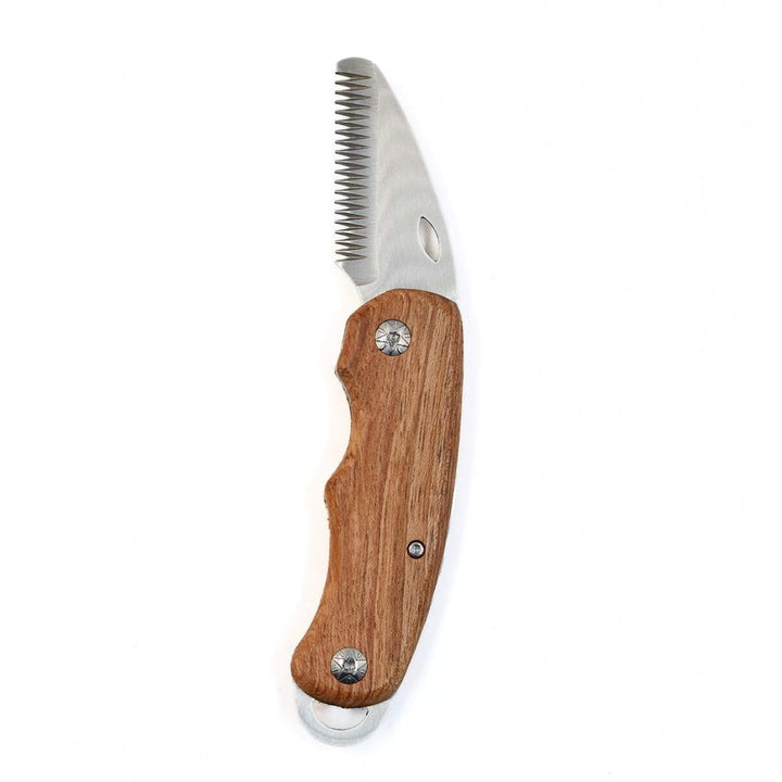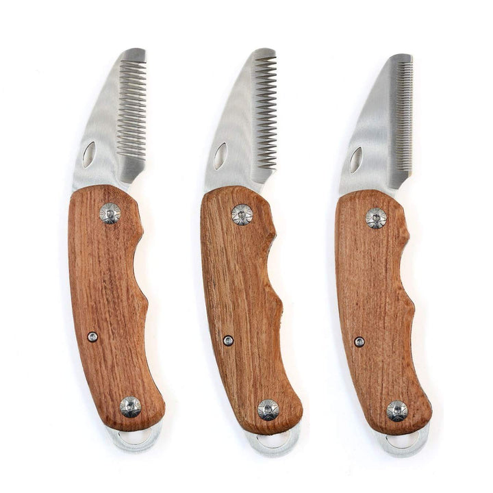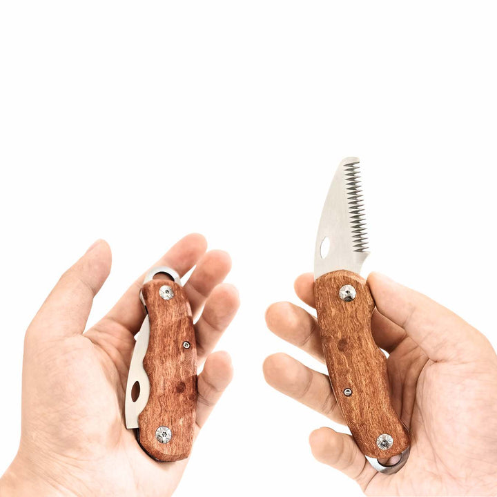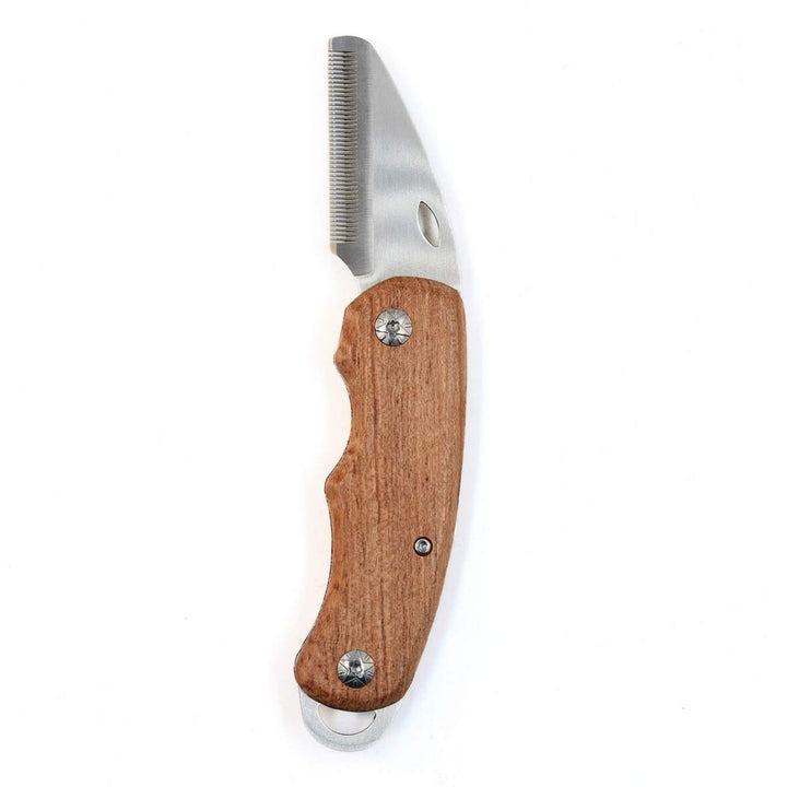 Made with a durable stainless steel blade and ergonomic wooden handle, this tool combines precision, comfort, and control. The foldable design makes it compact and safe to carry, ideal for mobile groomers or travel grooming kits.