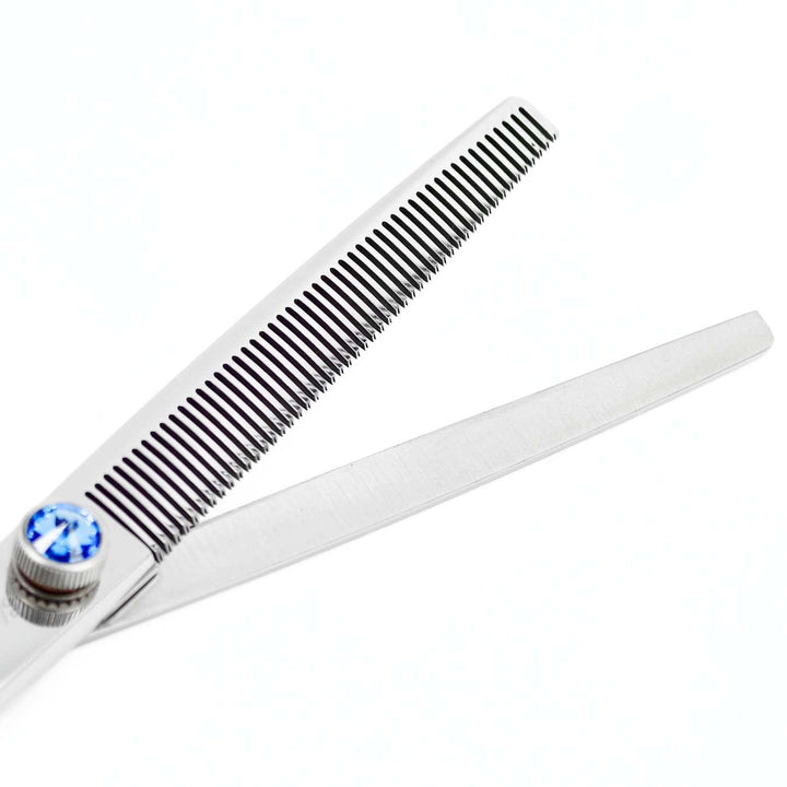 Shine with precision and style using the Gemstone Pro™ Thinner Shears, handcrafted in Japan from premium 440C Japanese stainless steel. Designed for professional groomers who demand both elegance and performance, these shears deliver buttery-smooth, snag-free cutting every single time.