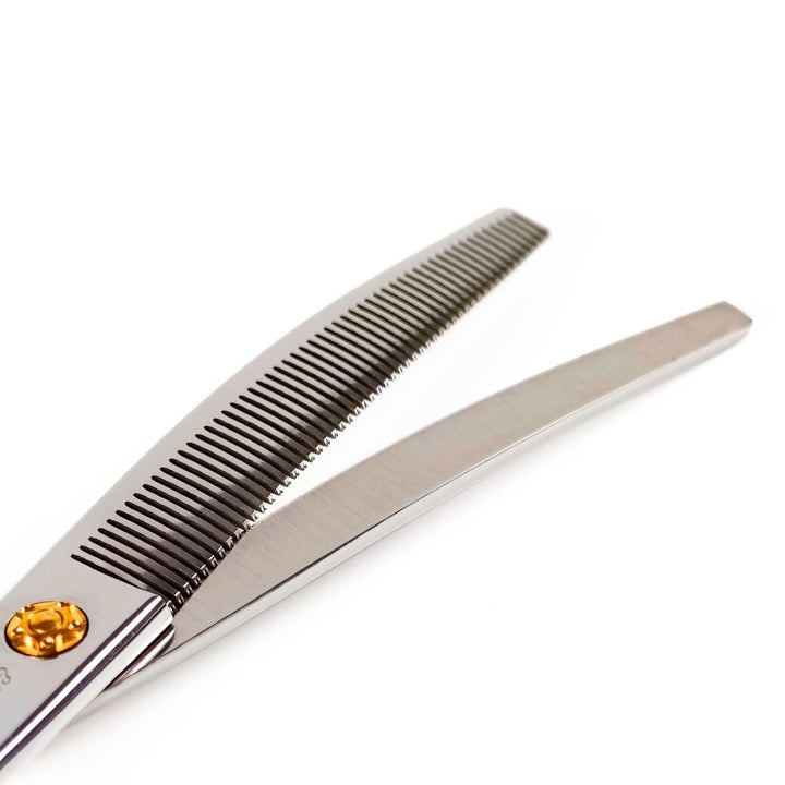 Geometrin av "Sött": Asian Fusion definieras av cirklar, runda ögon, runda ansikten, runda tassar. Våra 30° Kurvade Blad gör geometrin åt dig. De glider över nospartiet och tofsen och skapar en kontinuerlig båge som raka saxar helt enkelt inte kan efterlikna.